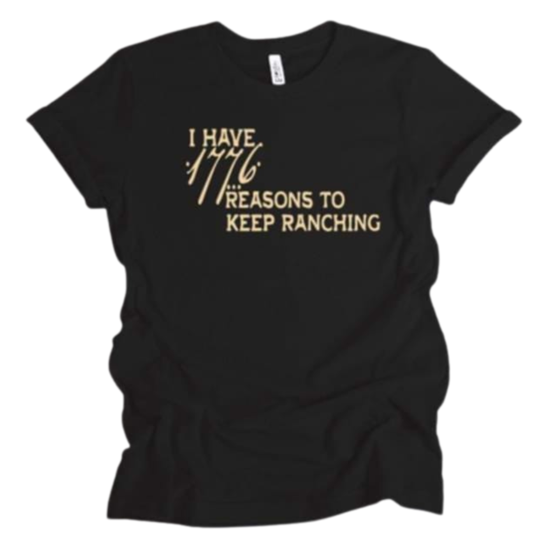 Honor the spirit of America in our 1776 graphic tee ! This ranching-inspired hoodie features a bold 1776 graphic, perfect for showcasing your patriotic pride. Stay warm and stylish with this must-have piece. Show your love for country and ranching all at once!