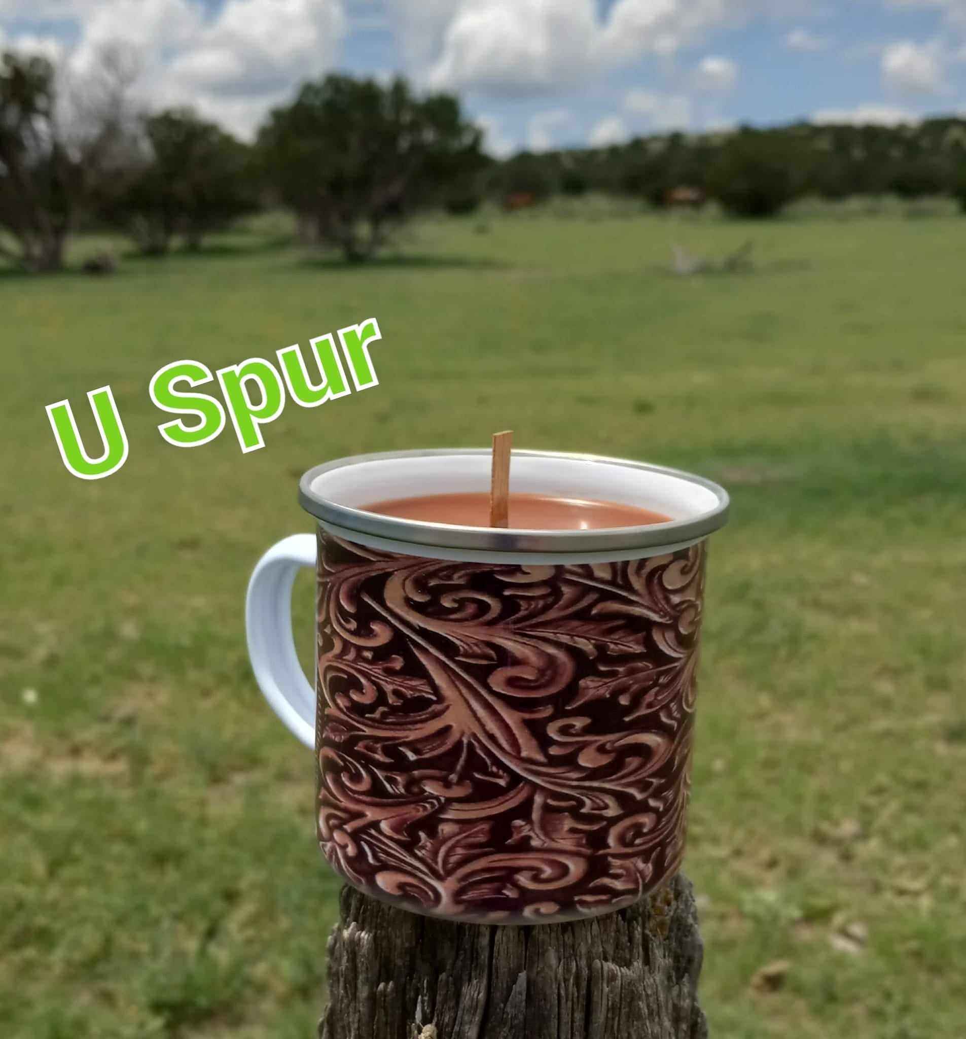 Great scents in all of your favorite of our signature ranch graphic camp cups. 10 oz candle with wood wick, burns approximately 8-10 hrs.