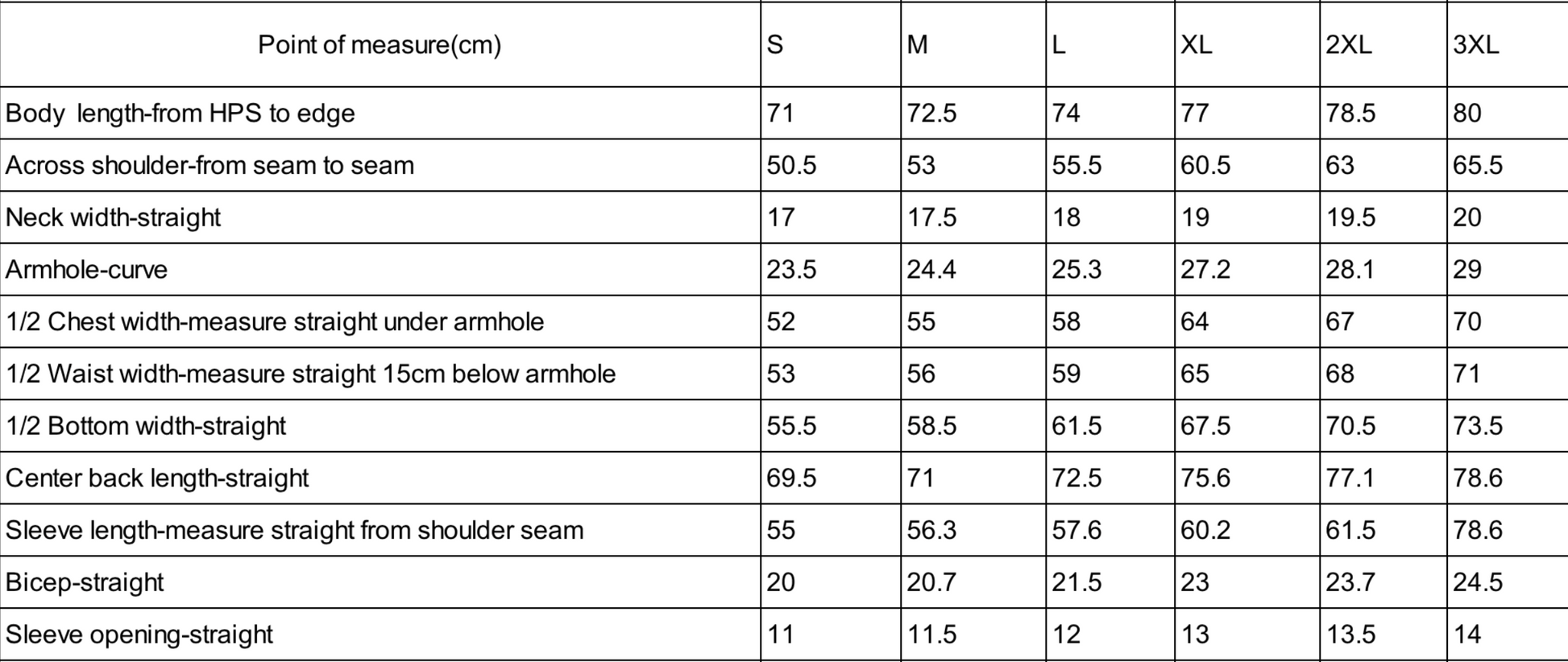 Sizing chart in pictures.