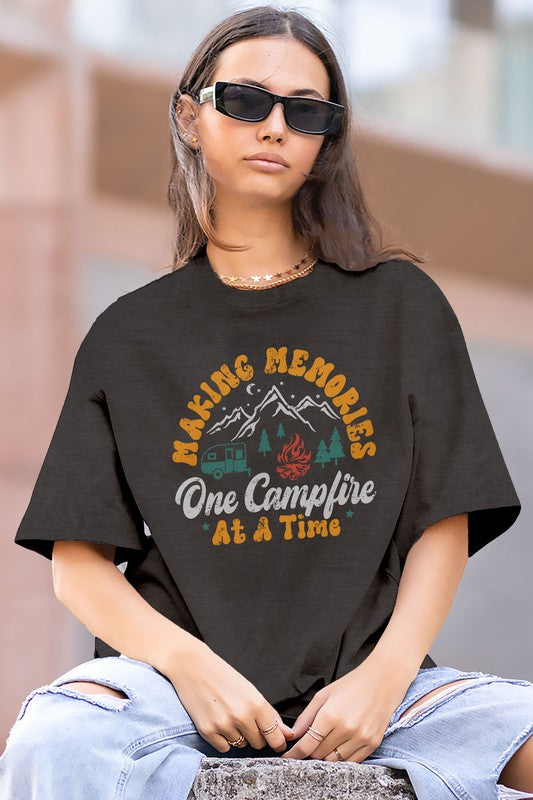 Retro Camping, One Campfire Making Memories at a Time, OVERSIZED Vintage Graphic Tee